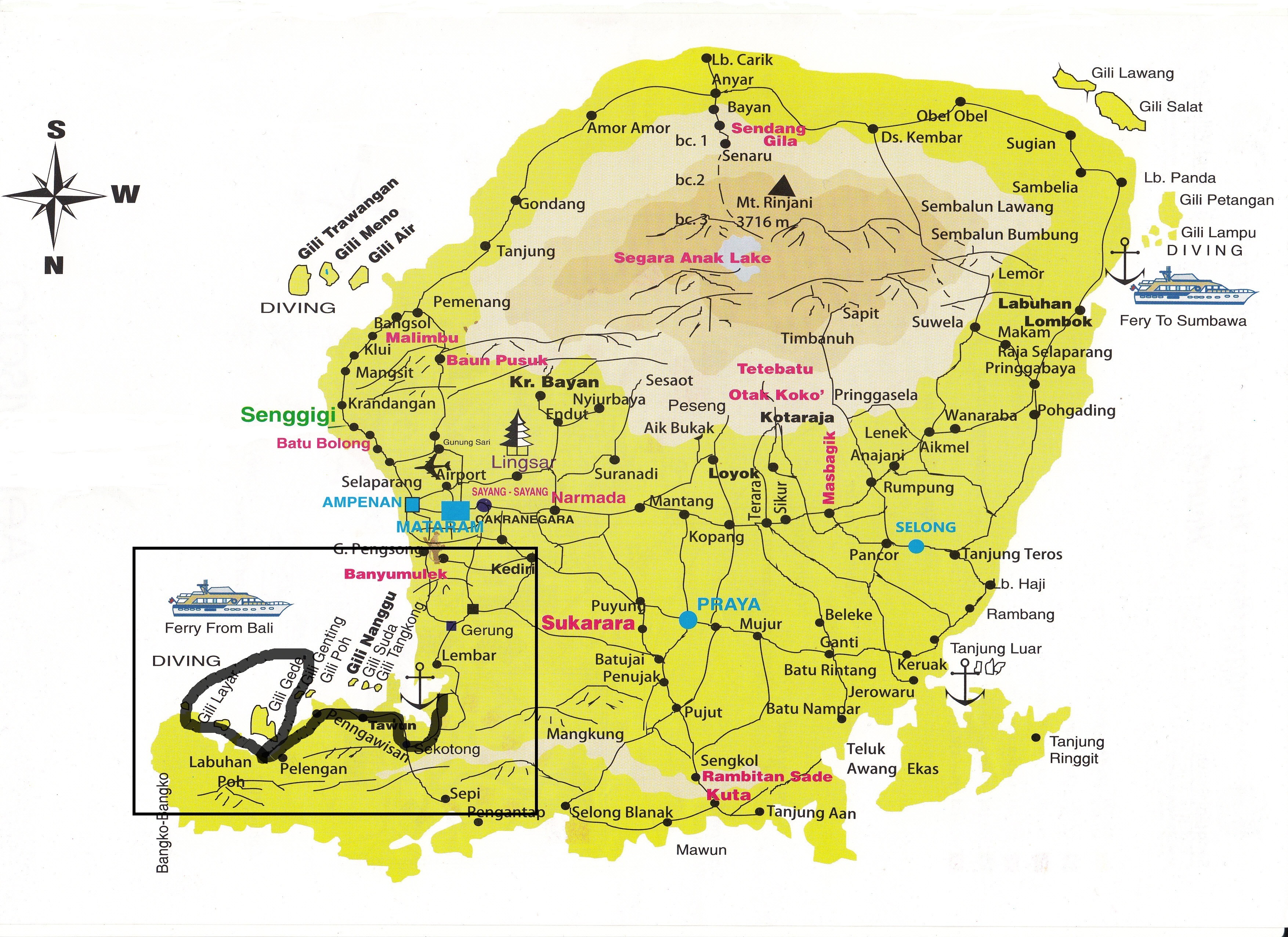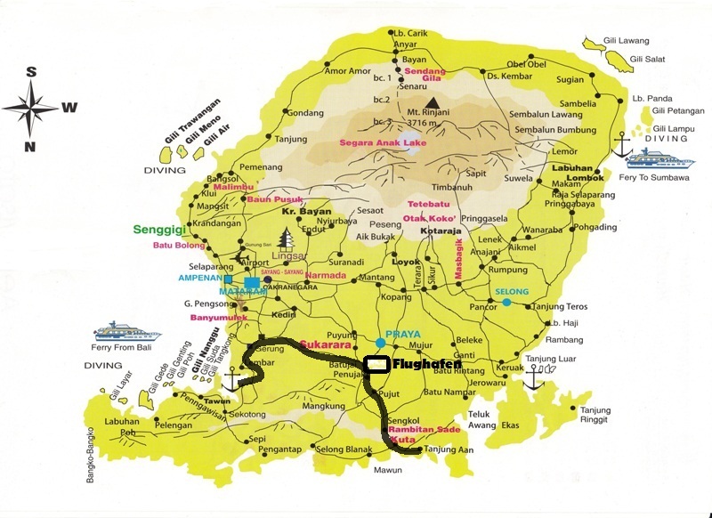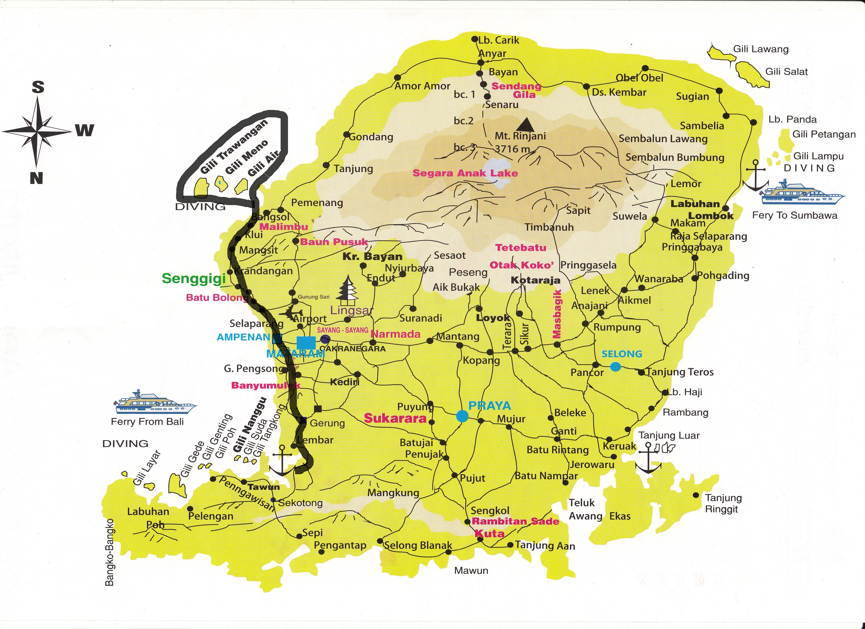 Abfahrt um 8:30 Uhr! Wir bieten eine Schnorcheltour zu den drei bekannten Gilis im Norden an: Gili Trawangan, Gili Meno und Gili Air. Die Fahrt zum Hafen dauert vom Zentrum Senggigis aus nur 20 Minuten. Wir fahren entlang der malerischen Küstenstraße im Nordwesten dieser exotischen kleinen Insel, mit einem herrlichen Blick auf die berühmte Nachbarinsel Bali und ihren imposanten Vulkan Agung.